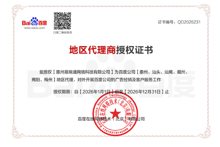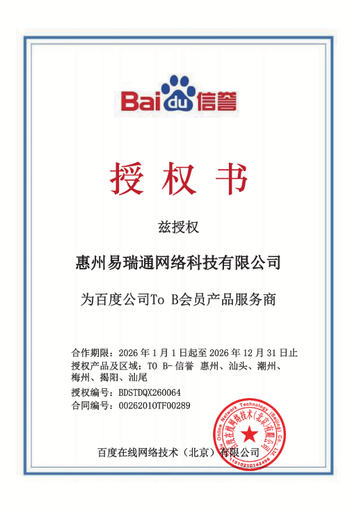 易瑞通網(wǎng)絡(luò)科技有限公司是一家綜合類的互聯(lián)網(wǎng)營(yíng)銷服務(wù)企業(yè),致力于為全行業(yè)提供網(wǎng)站建設(shè)及優(yōu)化、百度營(yíng)銷開戶及運(yùn)營(yíng)、愛采購(gòu)開戶及推廣等服務(wù),團(tuán)隊(duì)在“關(guān)鍵詞管理”“效果跟蹤”“創(chuàng)意設(shè)計(jì)“”營(yíng)銷咨詢“”品牌數(shù)字資產(chǎn)管理“等方面具備過硬的專業(yè)素質(zhì)。