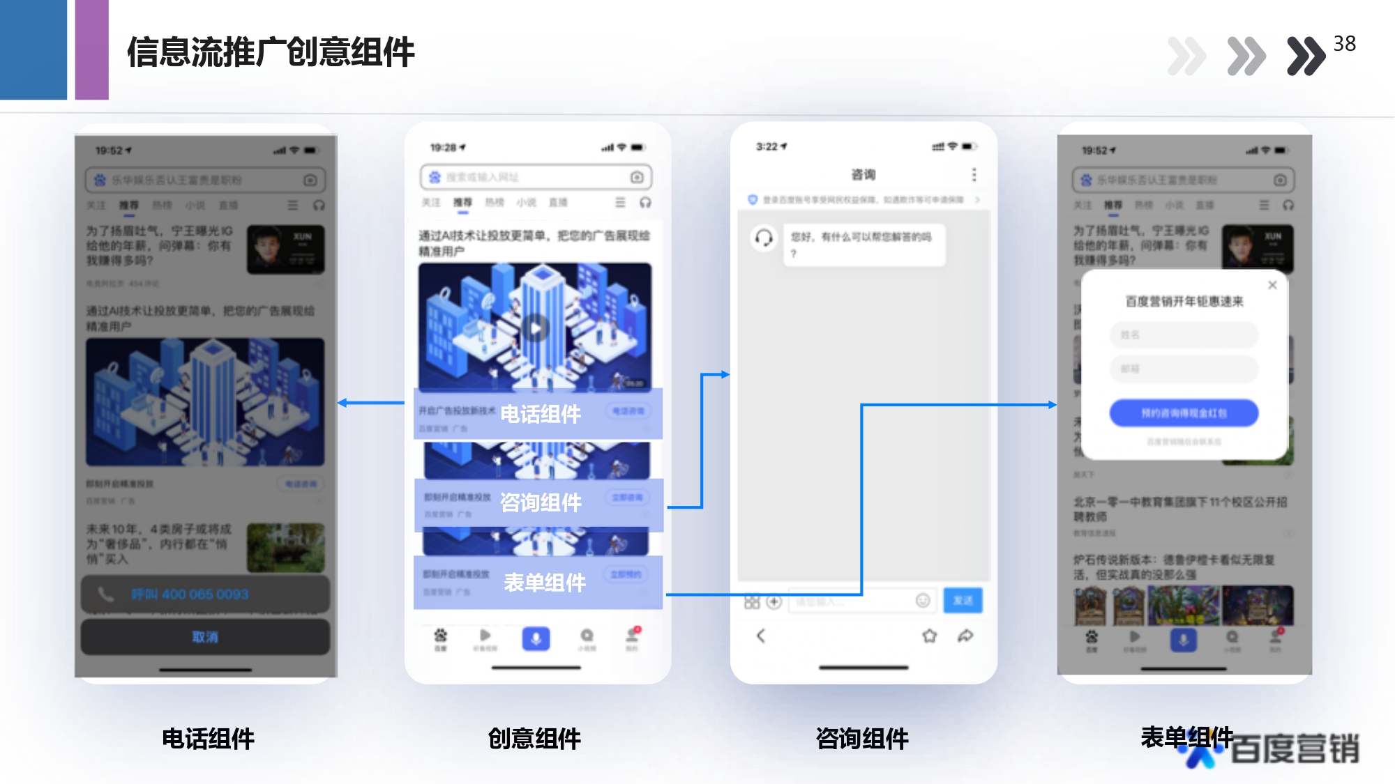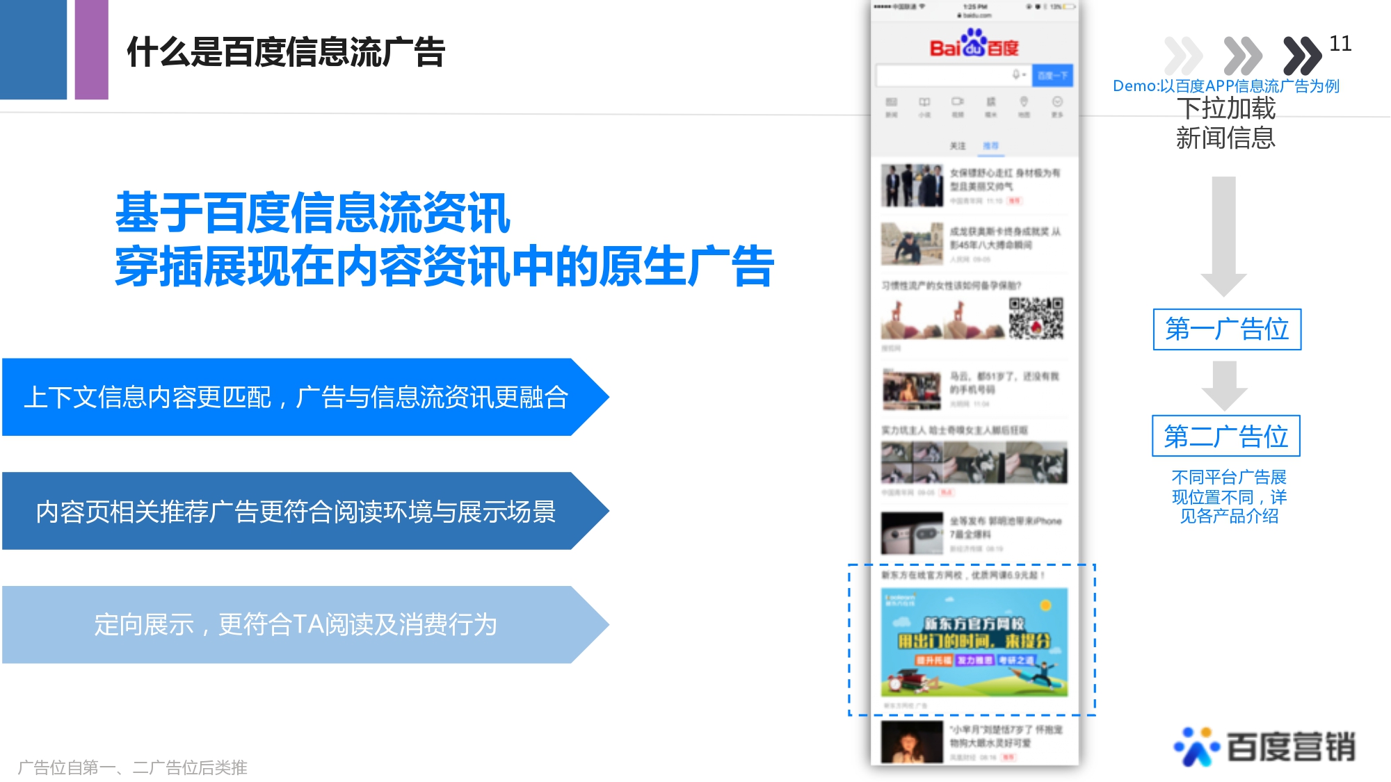 信息信息流廣告是在百度APP、貼吧等百度資訊流中穿插的原生廣告,通過(guò)“搜+推”雙引擎,將您的推廣信息自然融入在各類(lèi)資訊、信息中,易傳播、易操作。